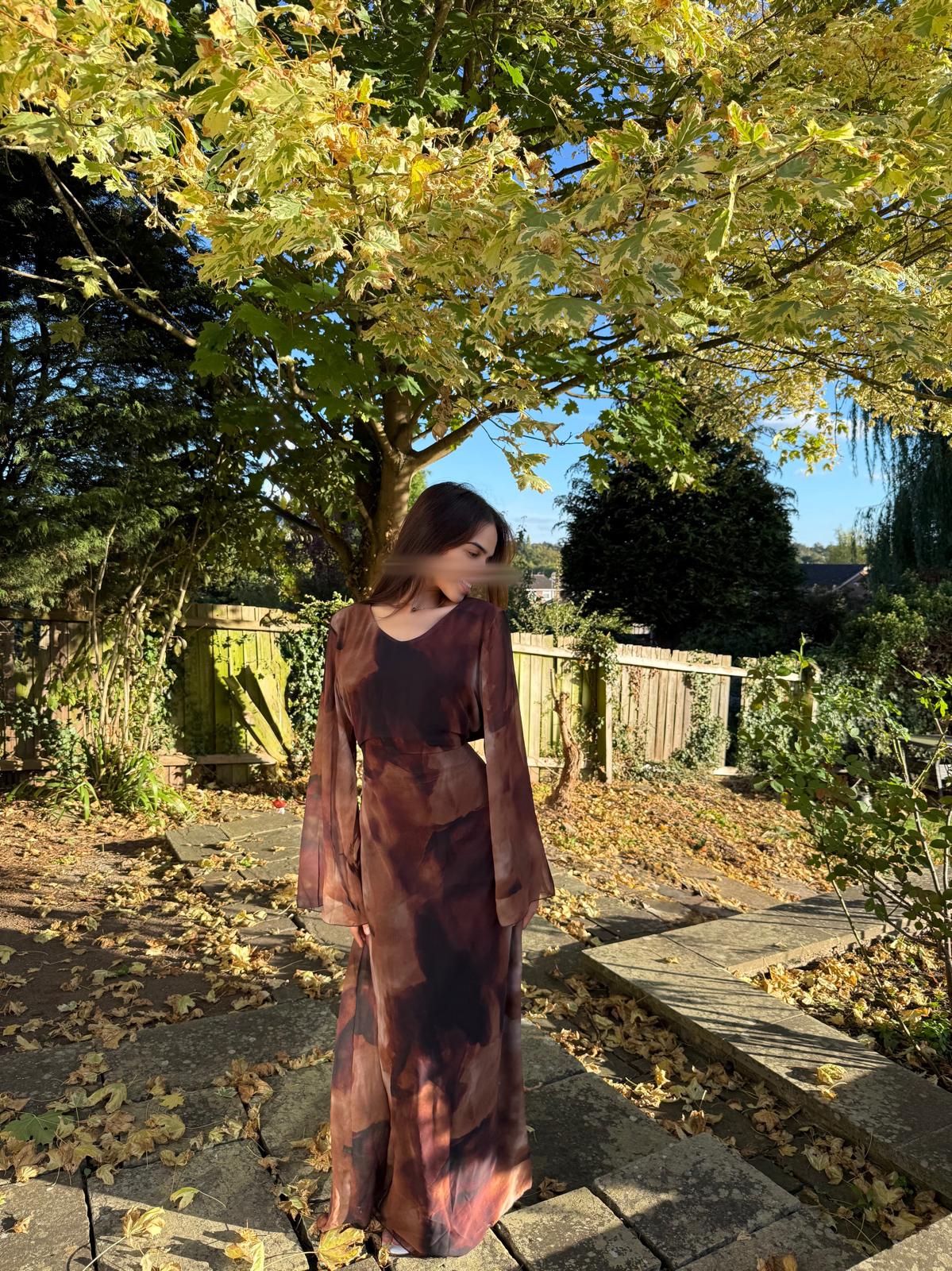 Fall fashion at its best! do not say bye to dresses Shesout brings you darker tonal prints you can wear in the winter season! this dress has a tie but can be worn without!