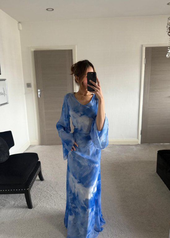eep your holiday vibe fierce and feminine with this stunning chiffon tie back maxi dress brought to you in the most gorgeous blue tie dye ! guaranteed to steal the show. We are obsessed! team with your statement jewellery to elevate the entire fit. all dresses have an inner lining so you do not have to worry!