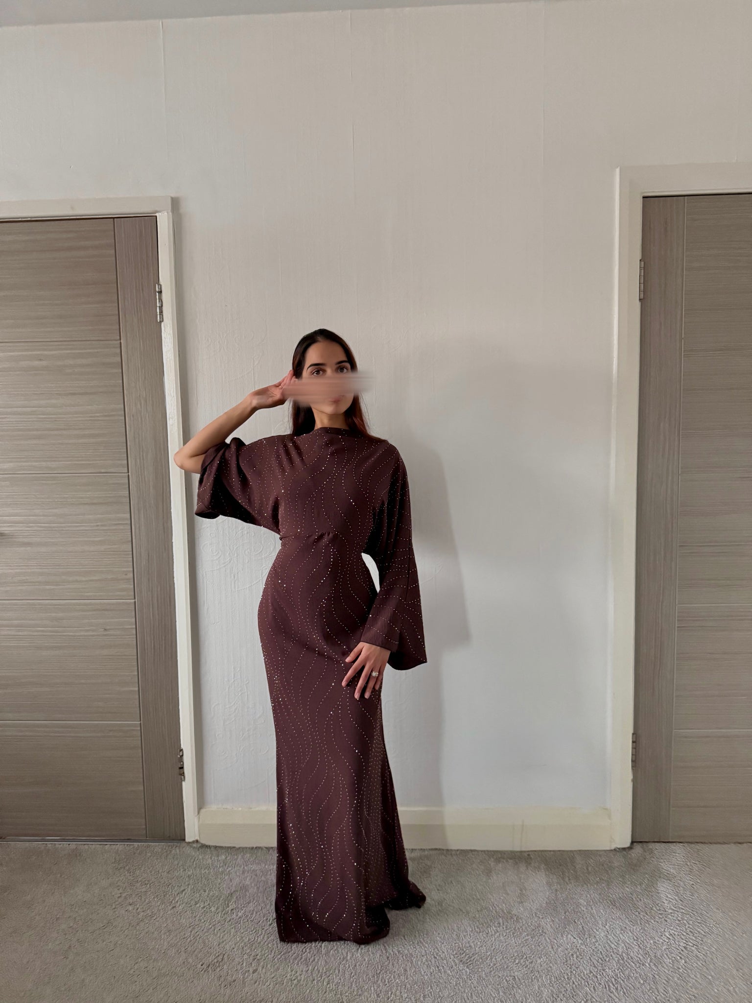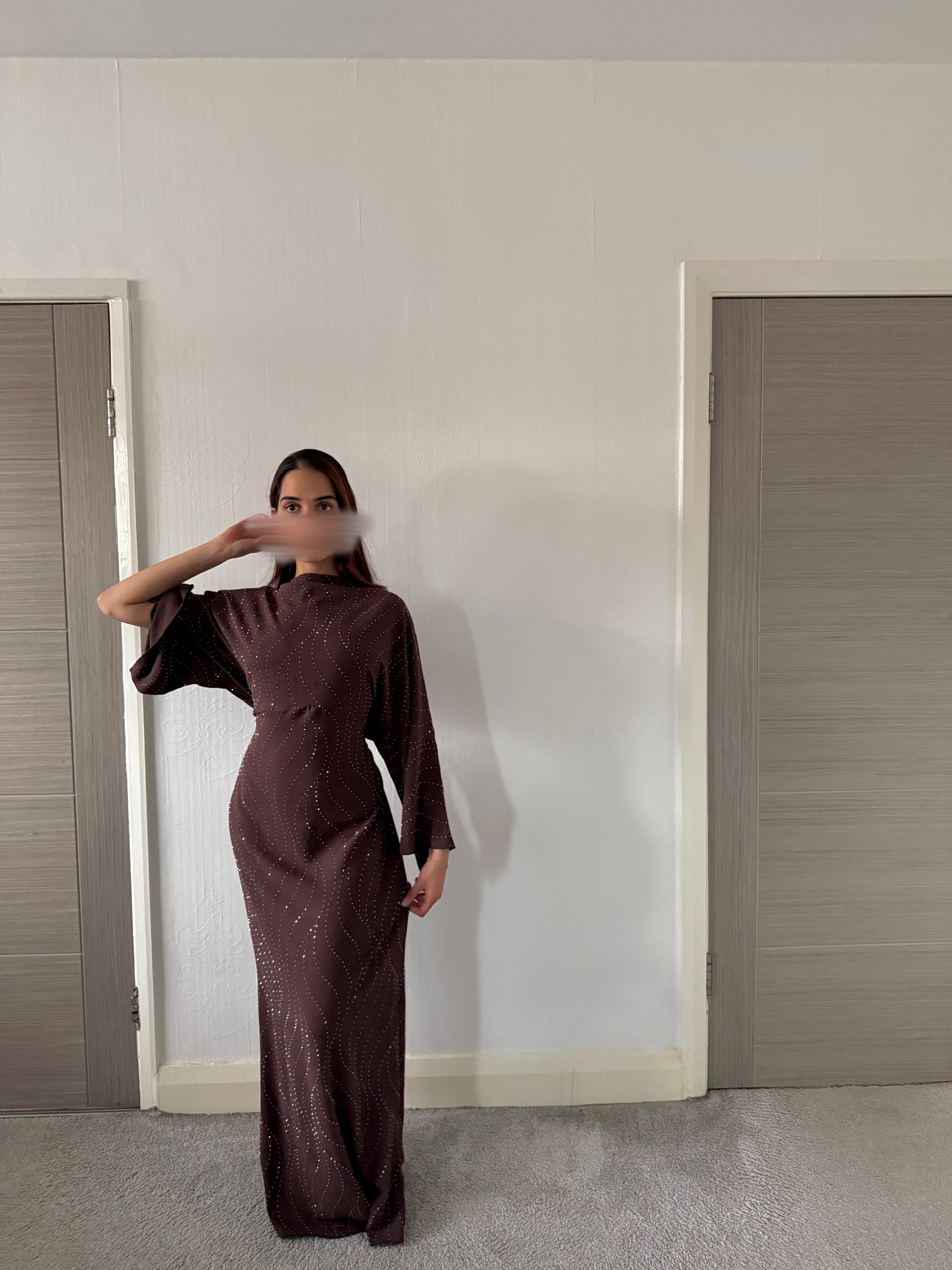 Woven glitter detail tie back maxi dress in espresso brown