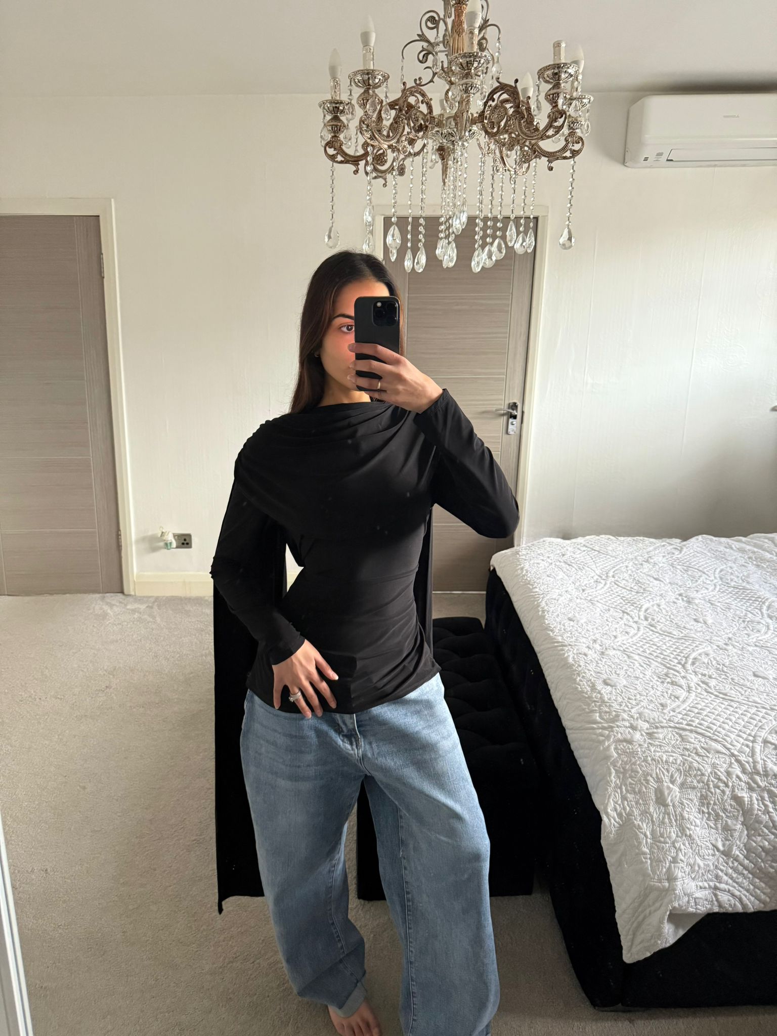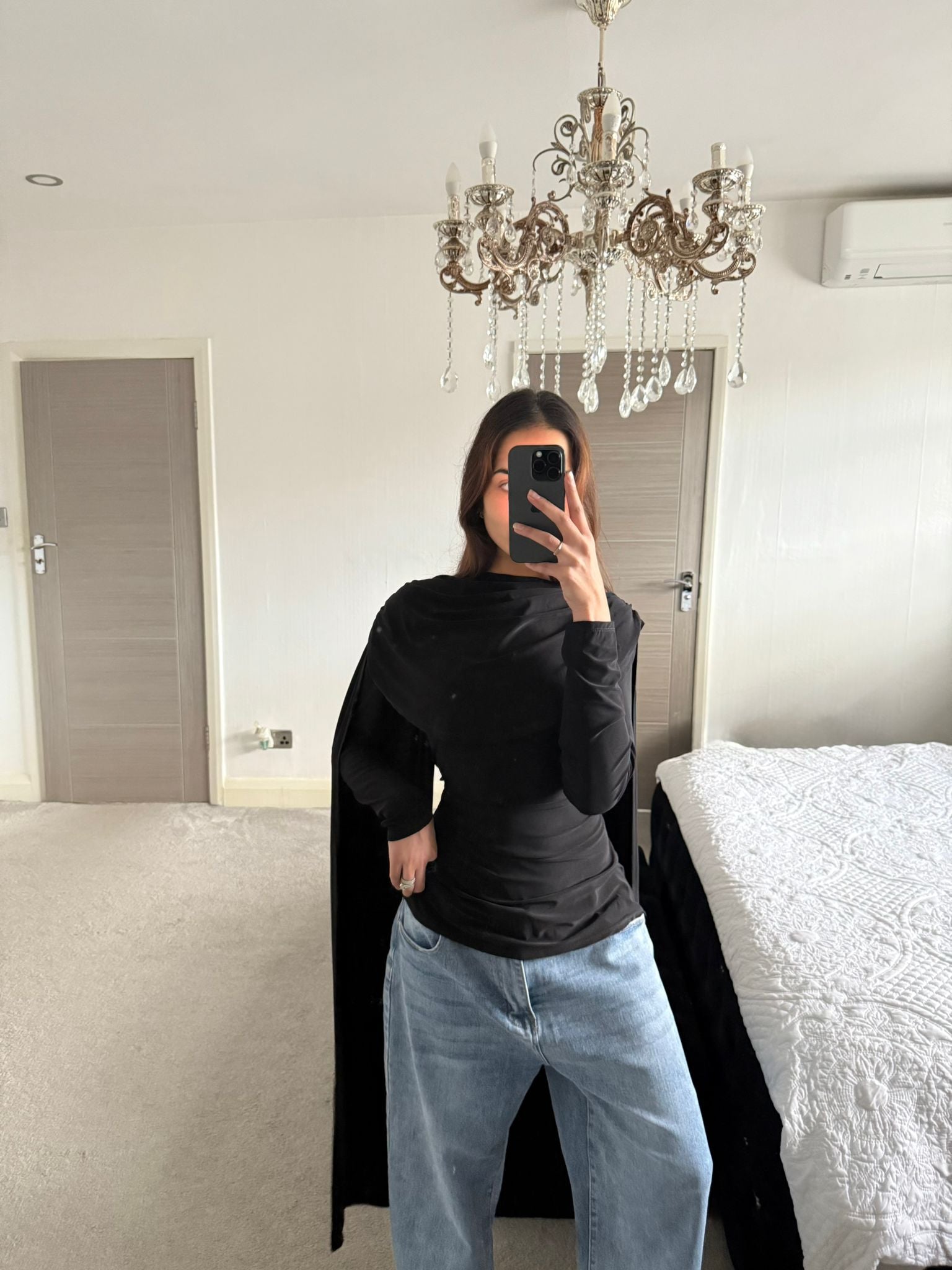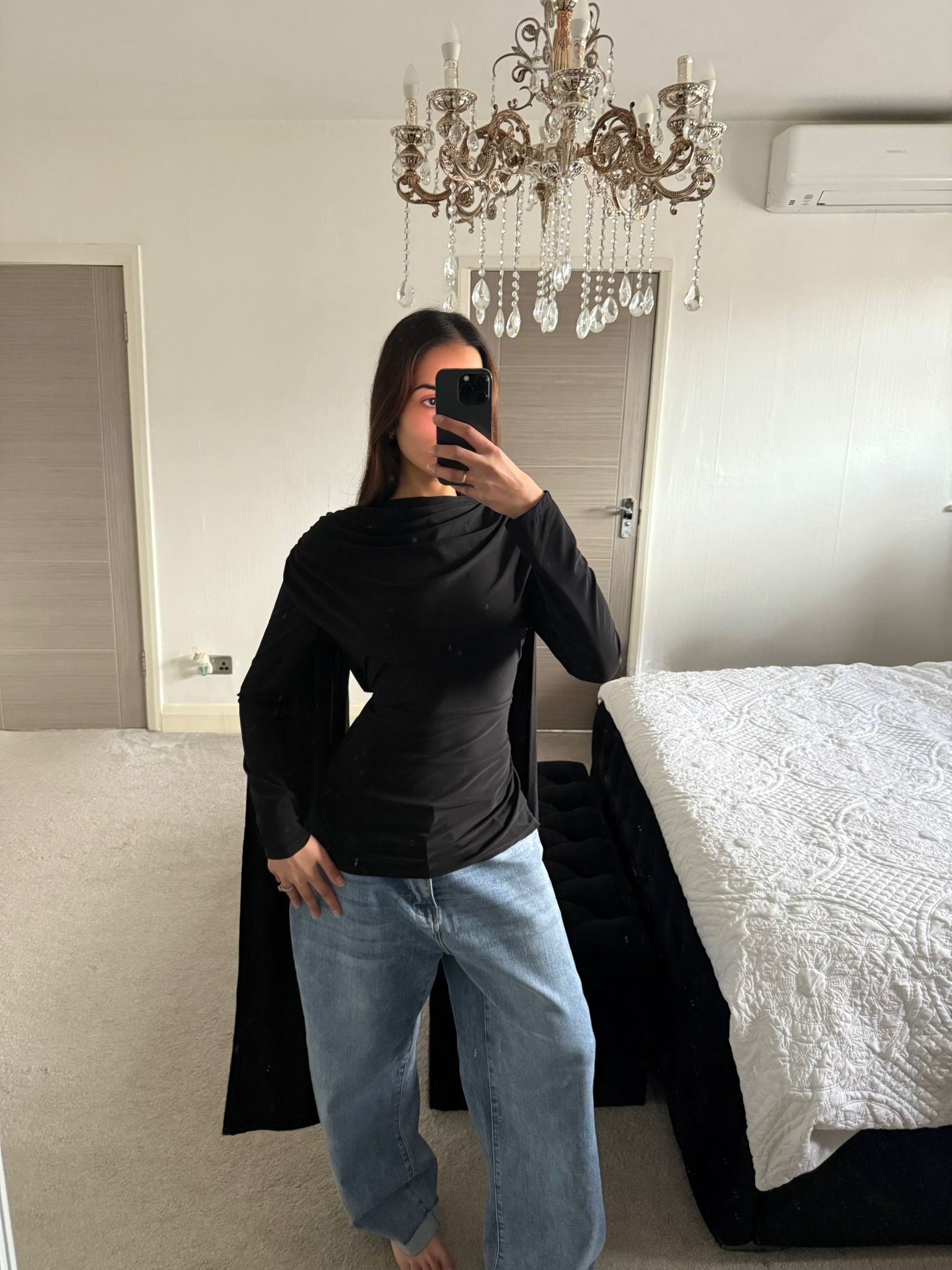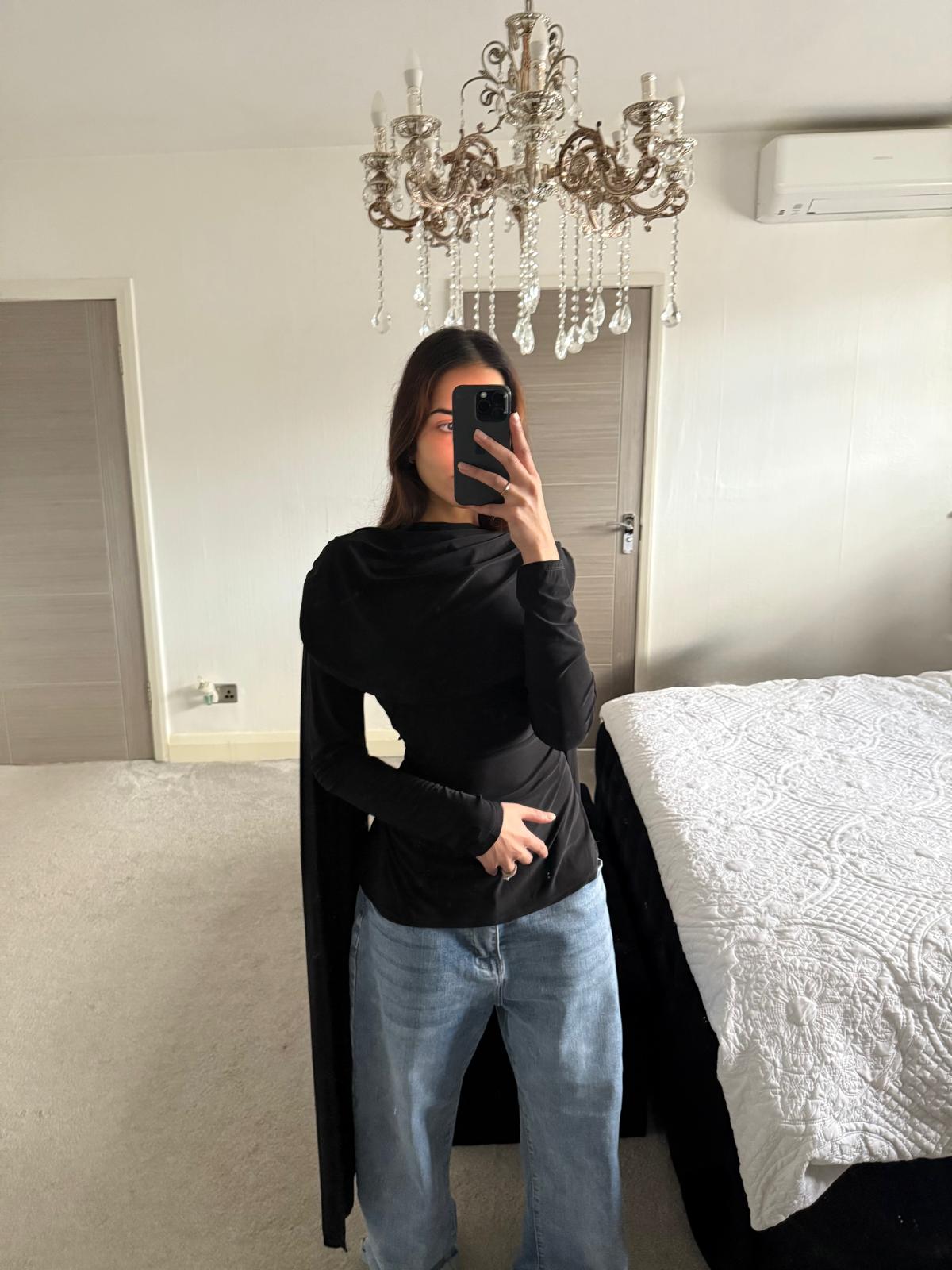 Modest cowl & cape detail tie back long top